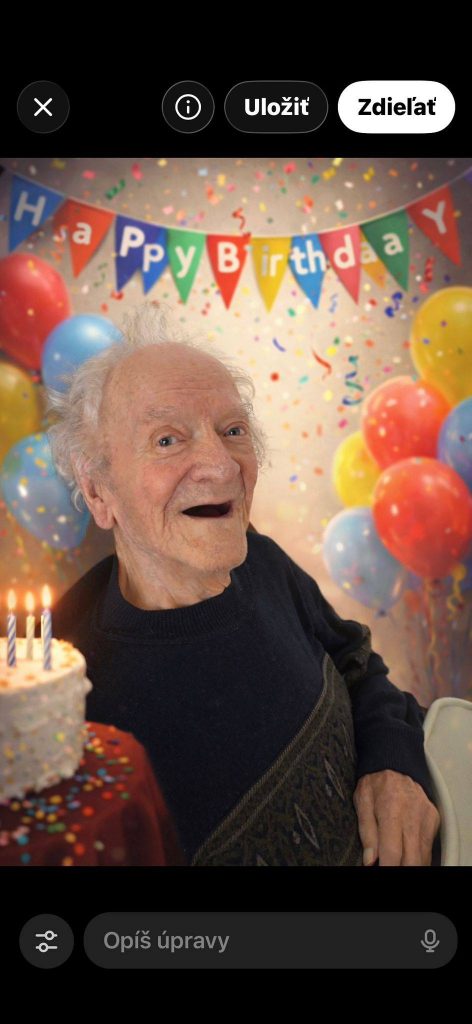 Krásnych 93 rokov. A je presne rok ako sme ho museli umiestniť do ústavu pre starostlivosť o seniorov „Alžbeta“, na Krahuliach. Je veľa ľudí, ktorí odsudzujú deti, keď pristúpia k tomuto kroku a rodiča sa takýmto spôsobom „zbavia“. Viete starnú nielen rodičia, ale aj deti. Ja som vedela, že je to nevyhnutné, žijem stovky kilometrov ďaleko a Môj Dobrý Manžel musí chodiť stále do práce. Ja som síce už dôchodkyňa, ale on ani zďaleka nie. Je o roky mladší ako som ja a musí nás živiť a ja sa starať o našu mníchovskú domácnosť. Aj keď som chodila na dlhé opatrovacie turnusy, ešte kým žila mamička, ktorú sme doopatrovali doma a potom už len k tatíkovi, vedela som, že to k tomuto kroku nevyhnutne vedie. Môj Dobrý Brat sa tomu nesmierne bránil a nechcel to pripustiť za nič na svete a podriadil tomu aj svoj predčasný odchod do dôchodku. A tak sme bojovali ako rodina, ako sme vedeli. Tým že si tatík zlomil nohu a dostal porážku, bolo dokonané. A nielen tým. Vlani som bola na dvoch operačných zákrokoch a Dobrý Brat tiež. Naše operácie neboli jednoduché a rekonvalescencia bola dlhá. Tým, že sa tatíkovi k tomu na dôvažok rozbehla demencia, ktorá už tne do živého, nebolo inej možnosti. Bolo to nevyhnutné rozhodnutie. Tatík nás už nepozná. Musíme sa mu vždy predstaviť keď prídeme. A chodíme naozaj často. A tak mu povieme, kto sme. On sa usmeje, zje čučoriedky a namrví z oblátok, ktoré schrúme a povie, že ďakuje za návštevu a pošle nás preč. Niekedy sa tam len otočíme. Reálni ľudia ho obťažujú, žije radšej vo svojom vnútornom svete. Tam v tom svete je mladý, chodí na prechádzky s manželkou, spieva si z plného hrdla a vedie schôdzu územného plánovania pred celou obcou. Naposledy nám tvrdil, že bol na konskom povoze so skupinou chlapov zo Seliec, na ceste v Poľsku a cestu im určovala neznáma sila. Jeho manželku, našu mamičku volá mama,, pretože si nevedel spomenúť ako sa volala. Ak sa nejakým zázrakom ocitne v realite, prestane rozprávať, reagovať a zaspí. Takže len spí a žije v neskutočnosti. Tatík nech Ťa ten Tvoj svet, v ktorom nie sme, stratili sme sa v Tvojej pamäti, naďalej uchováva v šťastí a spokojnosti. Budeme za Tebou chodiť a neustále Ti opakovať kto sme, pretože Ťa ľúbime nesmierne.