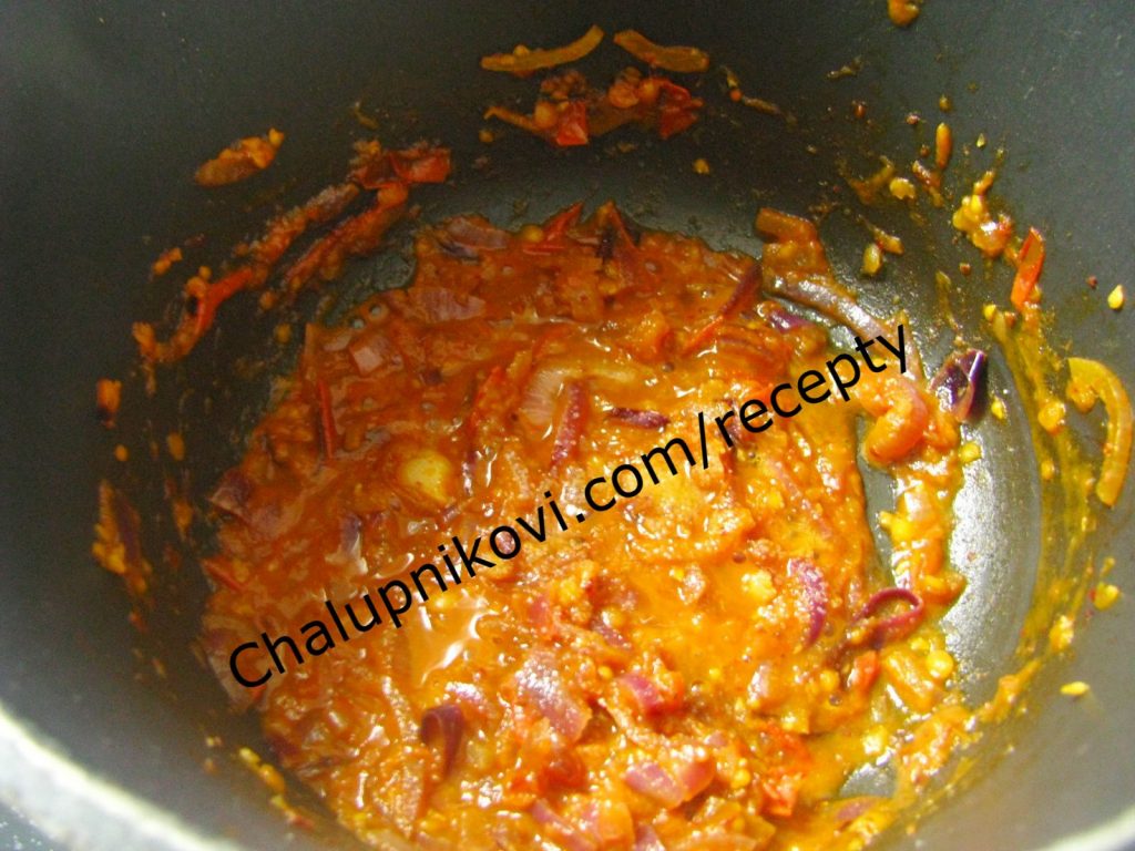 Pyre redukujeme cca 4 minuty. Ochutime ho masalou, koriandrom a rimskou rascou.