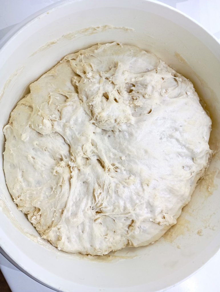 Misku opäť zakryjeme a necháme cesto kysnúť približne 40 minút, podľa teploty v kuchyni. Malo by byť mäkké, nadýchané a mierne bublinkové, ale stále držať tvar a byť pevnejšie.
