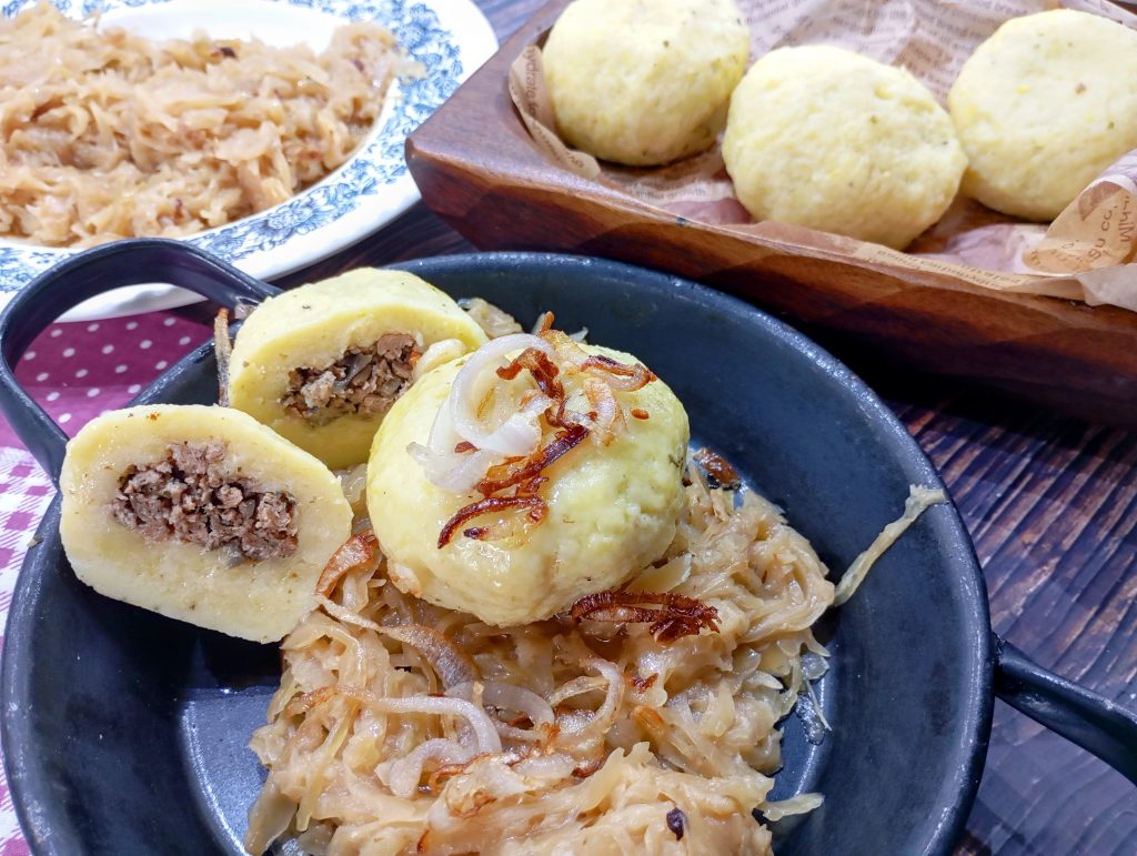 Ona používa na to zemiakové cesto z prášku. Dlhé roky som si ho aj ja nosila do Mníchova. Ako blázon som to vláčila v taškách a to sme ešte cestovali busom, zapratala som si tým toľko batožiny. Jednak som absolútne netušila, ako by som vlastne mala to zemiakové cesto urobiť a jednak mi to z prášku normálne chutilo.
