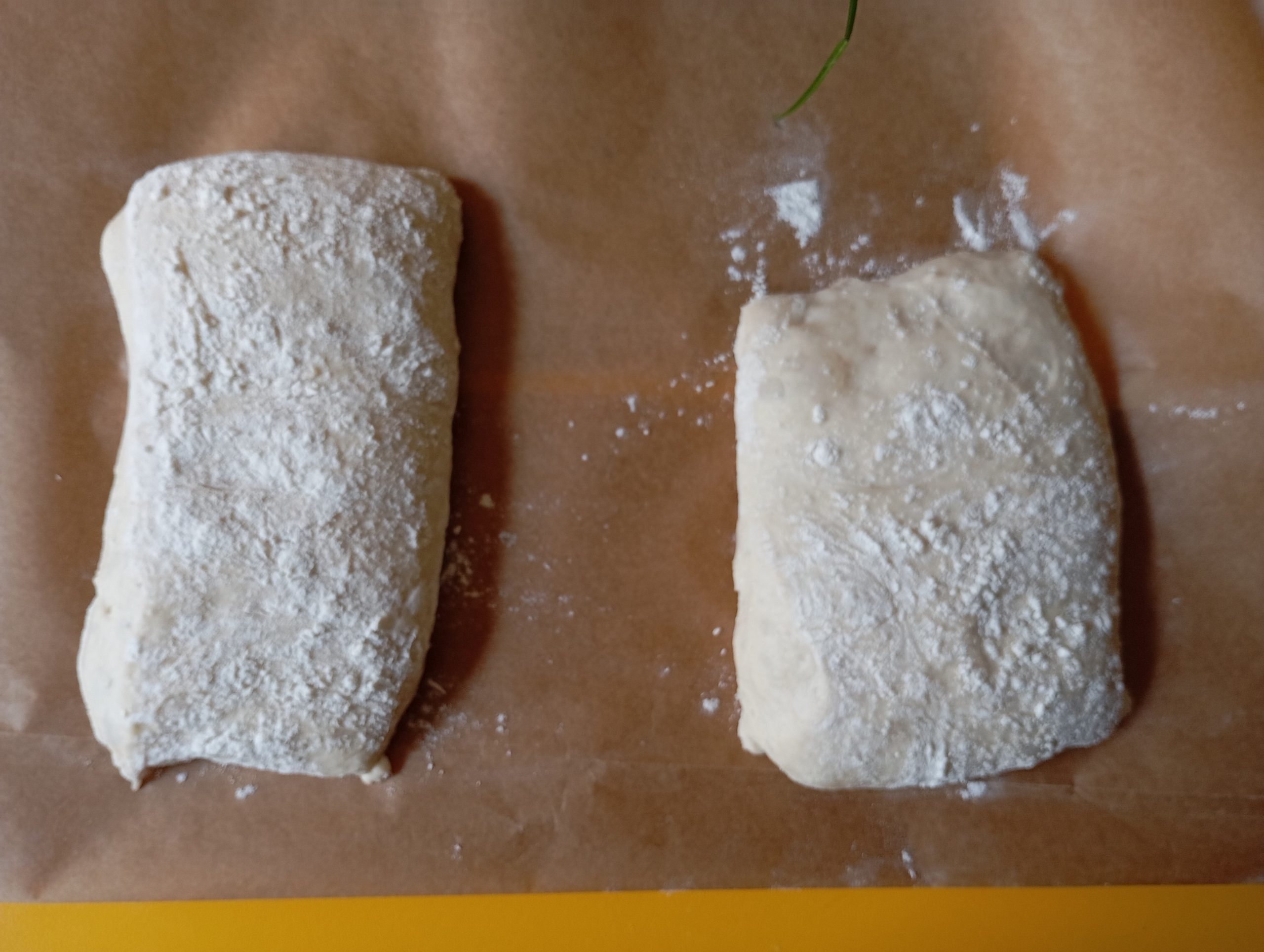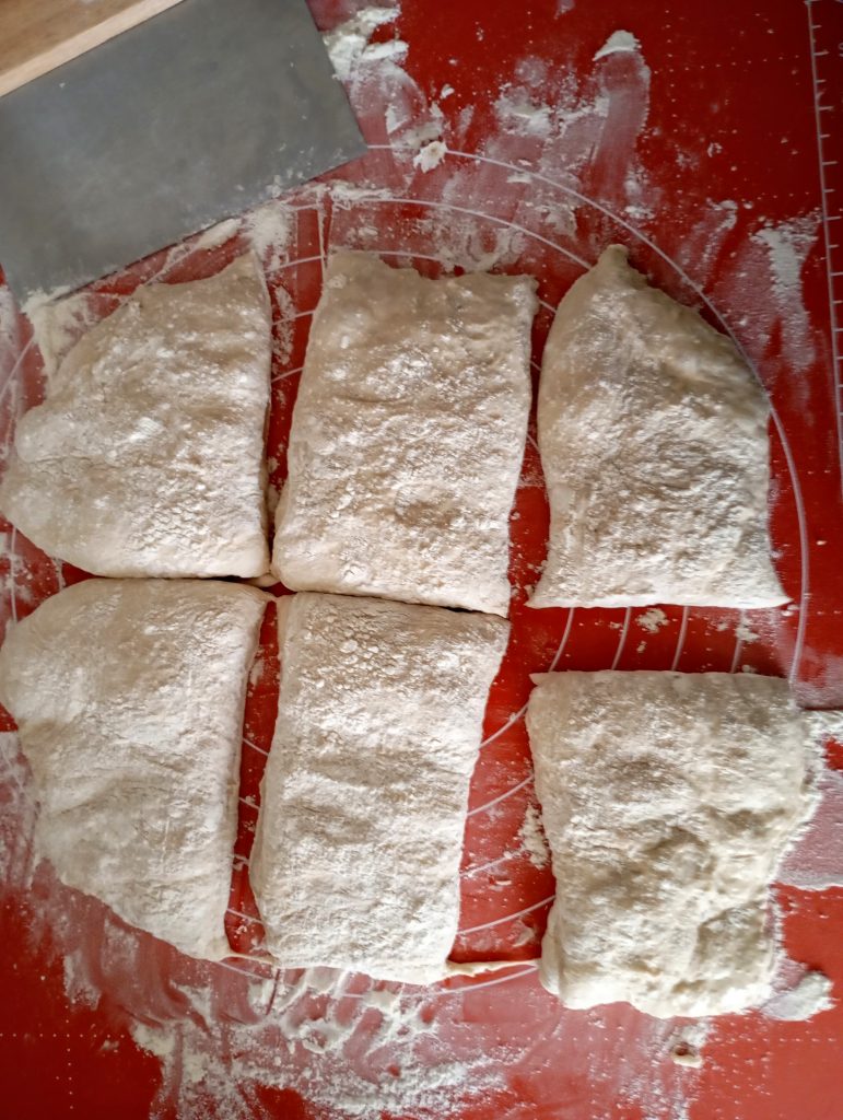 Čiabatky nemusia byť rovnaké. Je to rustikálne pečivo, nevyrovnávajte ich nasilu, ak ich máte krivé ako ja.