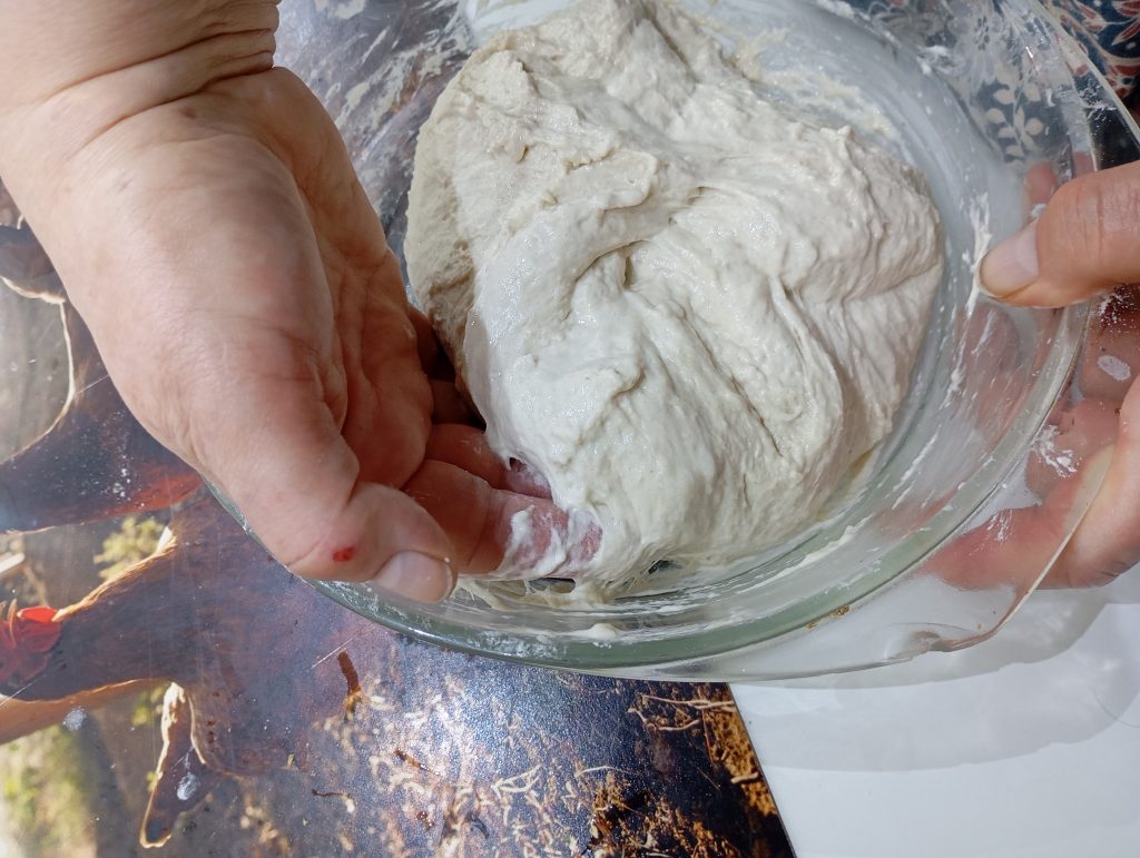 Je veľmi dôležité, manipulovať s ním čo najšetrnejšie, aby sme nepopraskali bublinky, ktoré sú uväznené v ceste. Nepichajte do neho, nepraskajte povrchové bublinky a v žiadnom prípade ho neprepracúvajte ako pri bežnom kysnutom ceste.