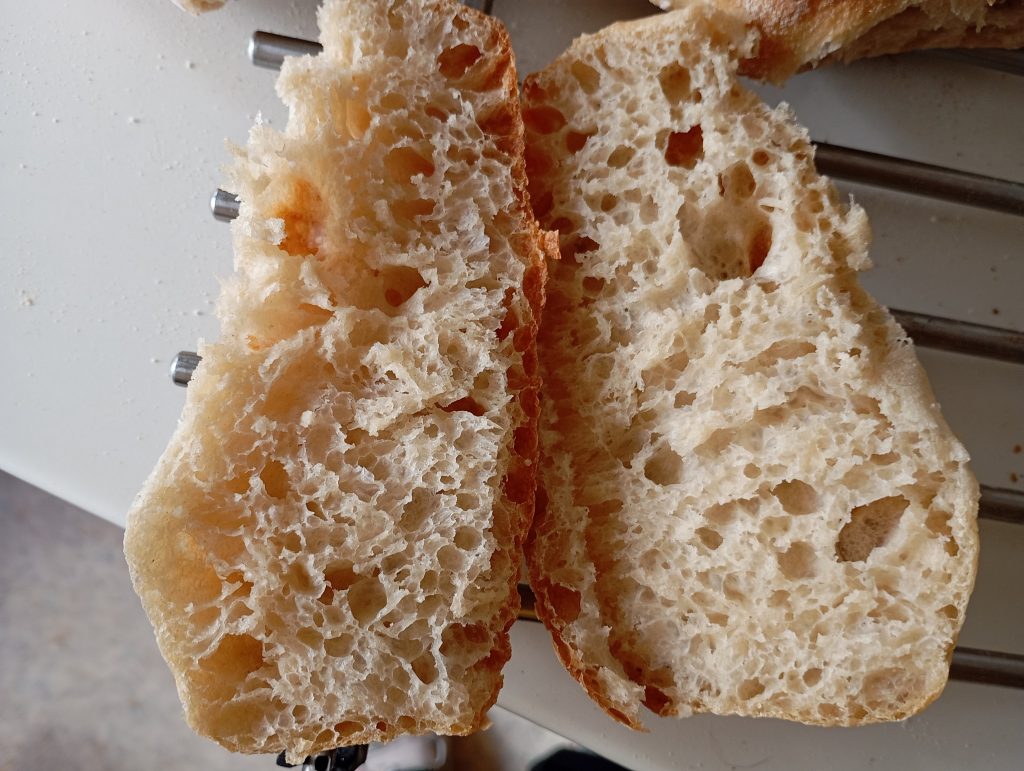 Toto je moja včerajšia ciabatta. Podľa mňa je dokonalá, na to, v akých podmienkach pečiem. Ako som písala existujú určite aj lepšie, aj instagramovejšie, aj také čo majú očiská ako svet veľké.