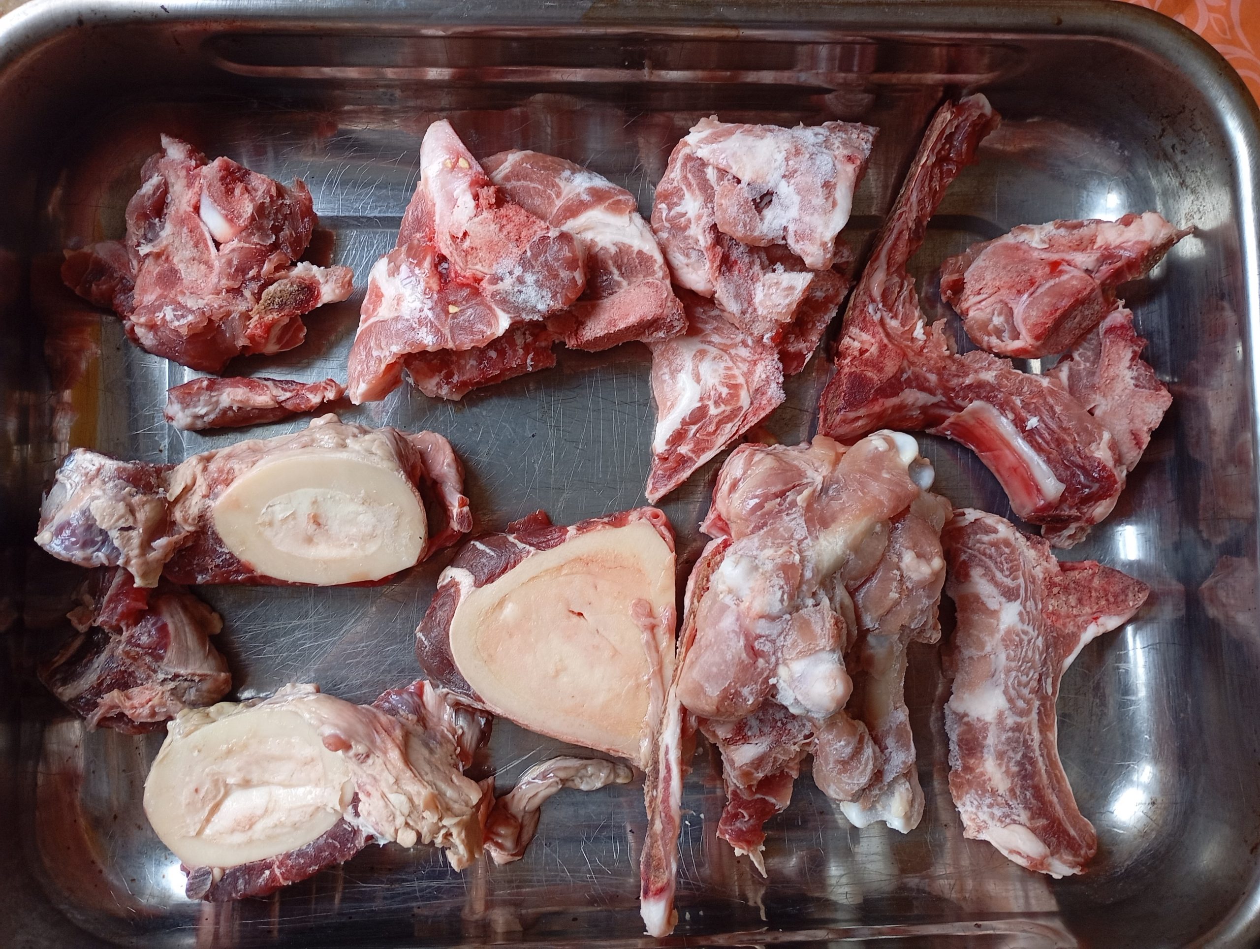 mix kostí (kuracie, bravčové, hovädzie – aj špikové) cca 1,5–2 kg